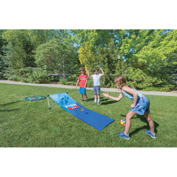 The Fish Fly Yard Game by Do U Play Games is an exciting outdoor activity for children aged 3 and up. Players fly “fish” across a “water” ramp, aiming to land them in “nets” to score points. Suitable for 2 to 6 players, this fast-paced game is perfect for backyards, parks, beaches, and indoor spaces. The game is simple to set up and take down, offering quick and engaging play sessions that promote physical activity and coordination.