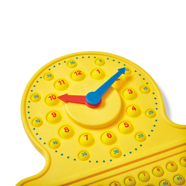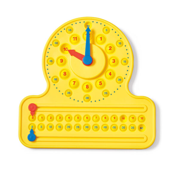 Transform counting into telling time with a tactile, poppable manipulative. Children will connect the horizontal number line to hours and minutes on an analog clock as they move sliders and pop numbers. The clock includes movable hour and minute hands. Ages 5Y+