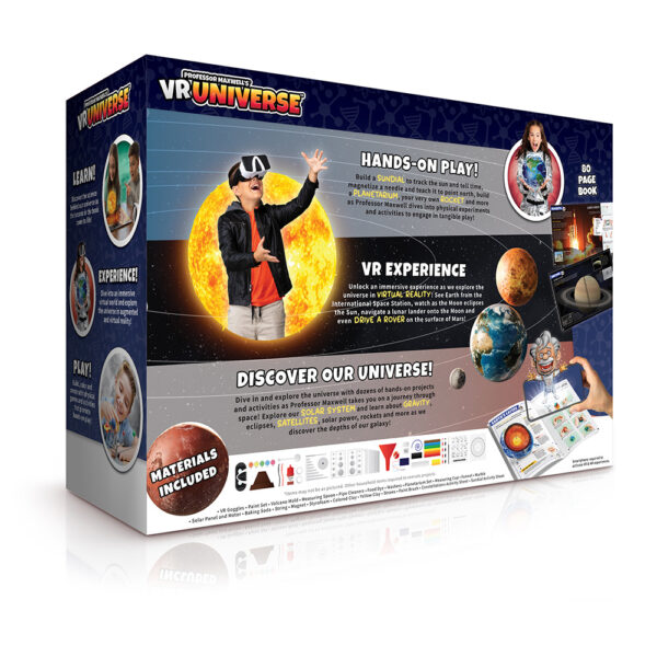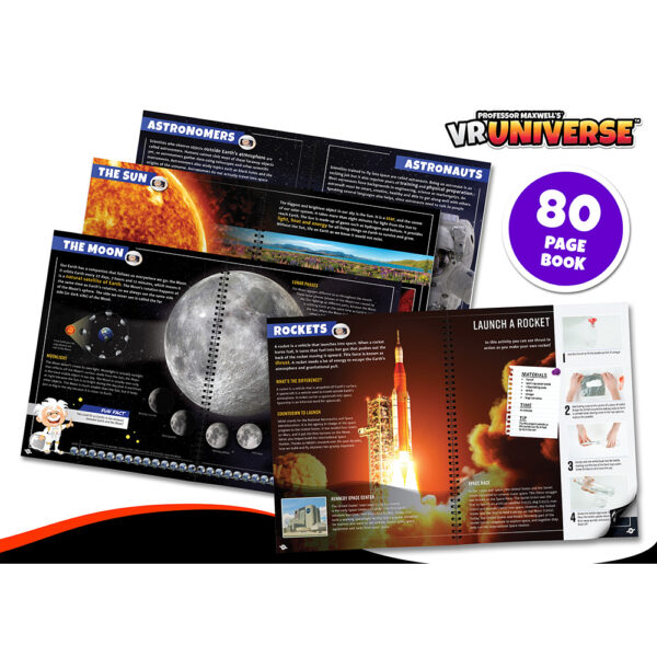 Journey into space and explore the planets, stars, and beyond in this 75-piece interactive STEM science kit. The included VR goggles bring the 80-page book to life with 112 immersive VR and AR experiences, including walking on the Moon and driving a rover on Mars!